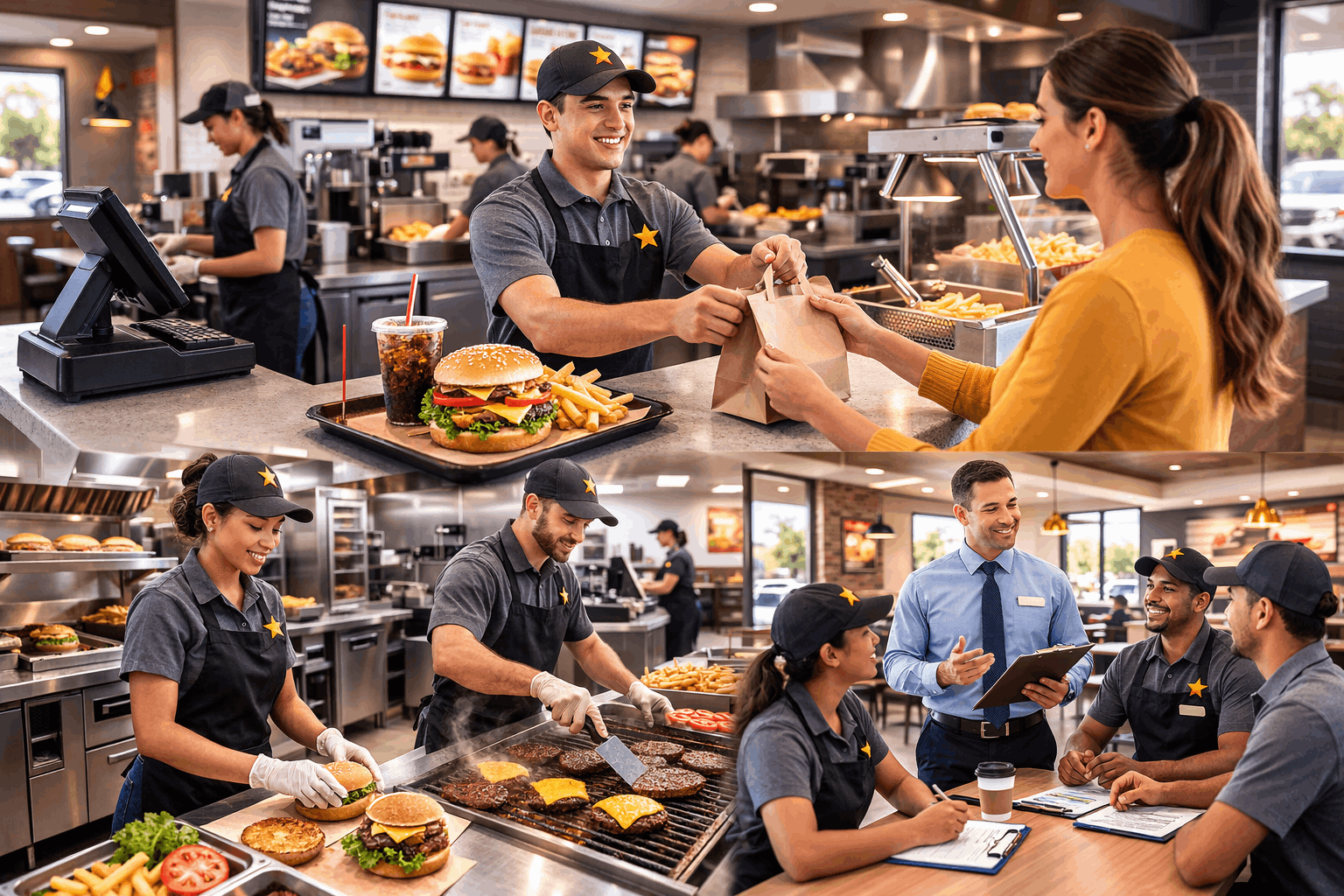 Crew roles typically focus on guest service, food prep, cashier work, and cleanliness, with training provided to help new hires learn station routines.